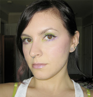 Sup y'all? This was my makeup look for yesterday. I didn't do ANYTHING to my eyebrows with this look 'cept rub a little 'Equality' into them. I'm glad I didn't fill them in as usual, it would have made the look more harsh than I wanted, ya know? I began by using UD - potion primer, then Pixie Epoxy. I then applied OMGWTF! in a circle in the center of both eyes, and applied 'Equality all around it, under the brow, and somewhat in the inner corner. Oh, and OMGWTF is in the inner corner as well! duh! MAC - Stars and Rockets was gently applied under the lower lash line with an angle brush. I just patted it on to get the full color. Lipgloss used was a really pretty one from a Sugar cosmetics lip palette I got a few years ago. It still smells edible =) This look didn't really require any blending.. but all colors used are easily blendable. Some of my photos are shot in daylight, while the warmer looking ones were taken with flash for a different perspective. I hope y'all like this look!