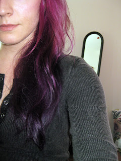 hello again! today i would like to share my current hair color. i had no idea mixing some red with conditioner and applying it over blue would turn out so nicely! i'll probably be keeping this for a good long while.